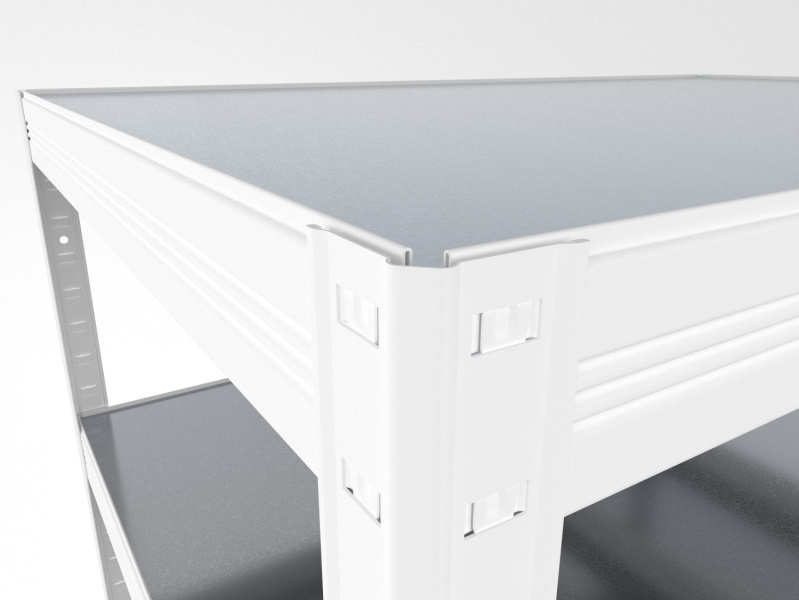 - Stahl-Fachböden lassen sich einfach mit feuchtem Tuch reinigen.