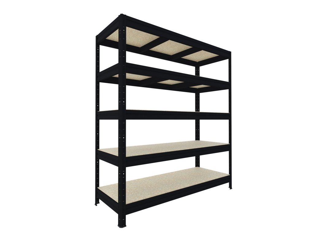 Grosses Garagenregal Biedrax 60 x 200 x 177 cm, 5 Fachböden - schwarz/Spanplatten JSD 15 mm, Fachlast 350 kg