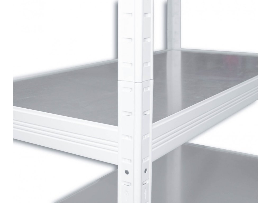 Das Kellerregal mit Metallböden kann man mit gewöhnlichen Putzmitteln und feuchten Tuch abwischen. Die Instalation ist sehr einfach und dauert wenige Minuten. Die Böden verwenden Sie ind die Ständer ganz einfach mit einem Gummihammer. Diese Kellerregale - verzinkte oder lackierte Variante - behalten immer verzinktes Blech. Diese Kellerregale mit Metallböden mit einer Tragkraft von 150 kg pro Boden ist auch ideal für Nassbereiche, wie einen Keller, eine unbeheizte Garage, ein Glashaus oder einen Gartenhaus. Der Vorteil dieses Regaltyps ist der verzinkte Fachboden, der leicht in den Balken eingelassen ist dadurch entsteht eine ca. 4 mm dicke Kante um das gesamte Regal, die ein Herausfallen von Gegenständen aus dem Regal verhindert. Ein weiterer Vorteil ist die Möglichkeit, die verzinkten Blechregale einfach herauszunehmen und zu waschen, ohne das gesamte Regal zu demontieren. Auchtung - das Blechblat hat scharfe Kanten - deshalb verwenden Sie die Schutzhandschuhe.