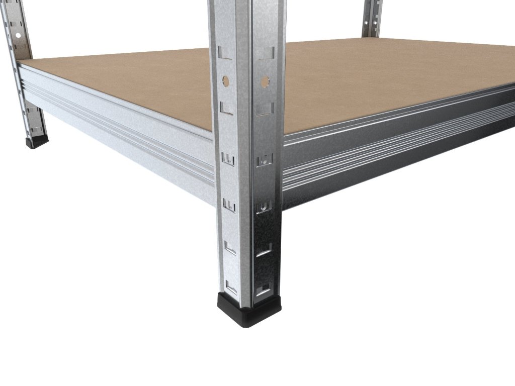 Lagerregal besteht aus einer Metallkonstruktion mit Stecksystem, mit Holzböden MDF - Holzwerkstoffplatte bestehend aus harzgebundenen Holzfasern, diese Platten sind aus natürlichen Materialien. Unterschied von klasische Holzspanplatte ist, dass die MDF Platte modern, stärker und ekologisch ist. MDF-böden sind nicht für feuchte Räume geeignet. Die montage dauert ca. 15 - 30 Minuten, dank des schraubloser Stecksystems. Die Fachböden können variabel eingesetzt werden. Lagerregal ist ideal für den Lager, den Keller, Werkstätte oder Garage.