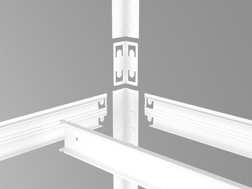- Die Winkelprofile des Regals sind einteilig (nicht geteilt).