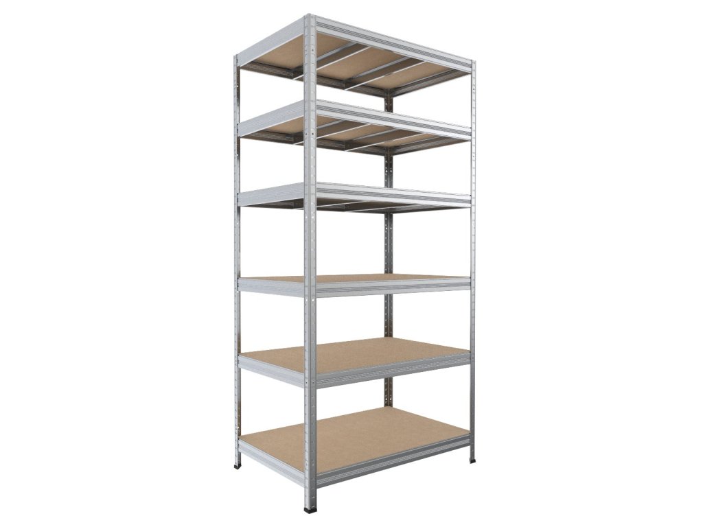 Lagerregal besteht aus einer Metallkonstruktion mit Stecksystem, mit Holzböden MDF - Holzwerkstoffplatte bestehend aus harzgebundenen Holzfasern, diese Platten sind aus natürlichen Materialien. Unterschied von klasische Holzspanplatte ist, dass die MDF Platte modern, stärker und ekologisch ist. MDF-böden sind nicht für feuchte Räume geeignet. Die montage dauert ca. 15 - 30 Minuten, dank des schraubloser Stecksystems. Die Fachböden können variabel eingesetzt werden. Lagerregal ist ideal für den Lager, den Keller, Werkstätte oder Garage.