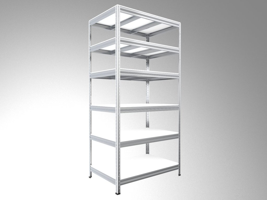 Lagerregal mit weissböden Biedrax 60 x 90 x 210 cm verzinkt - 6 Laminatboden weiss 12 mm