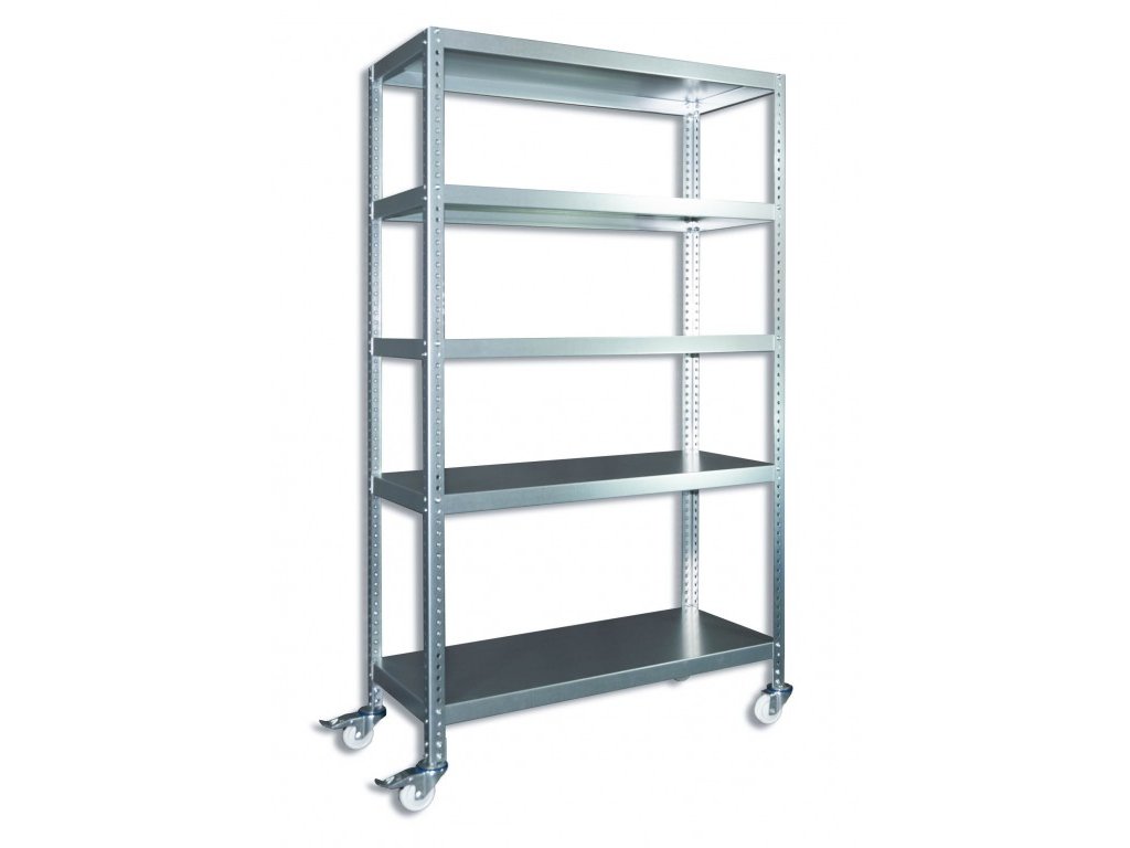 Regal mit Rollen Biedrax, verzinkt - 45 x 100 x 160 cm, 5 Fachböden