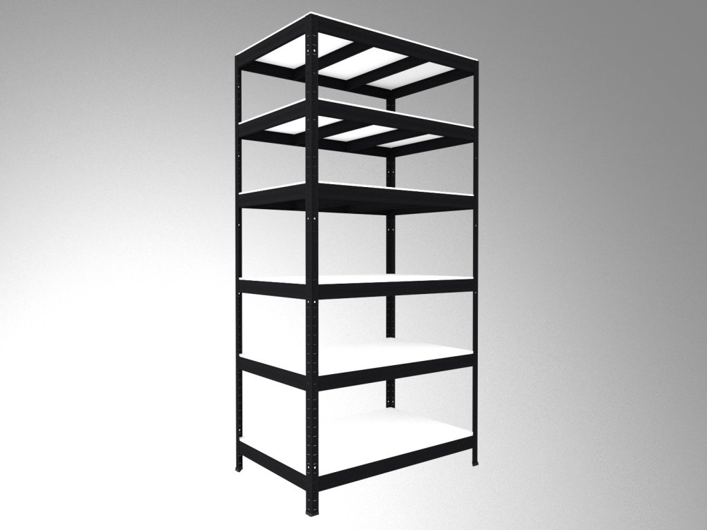 Steckregal Biedrax 35 x 120 x 180 cm, Schwarz, 6 Fachböden weiß laminiert 12 mm, Fachlast 200 kg pro Fachboden