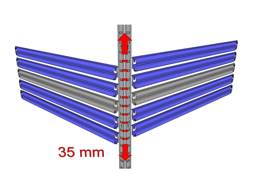 - Regalböden im 3,5-cm-Raster verstellbar.