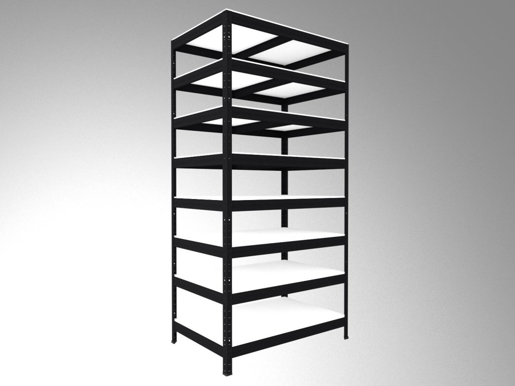 Steckregal Biedrax 35 x 60 x 210 cm, Schwarz, 8 Fachböden weiß laminiert 12 mm, Fachlast 200 kg pro Fachboden
