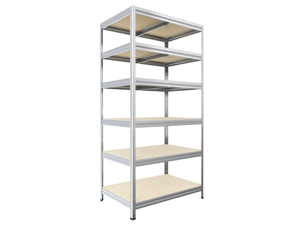 Steckregal mit Fachböden aus OSB-Spanplatten 10 mm. Regale mit OSB-Fachböden eignen sich auch für feuchte Räume wie Schuppen, Pergolen oder Keller. Sie sind jedoch nicht für den Außenbereich mit direkter Niederschlagseinwirkung geeignet. Das einzigartige schraubenlose Stecksystem ermöglicht eine schnelle Montage – die Bodenträger werden einfach in die Winkelprofile gesteckt und durch leichtes Klopfen fixiert. Diese schraubenlose Verbindung garantiert eine hohe Steifigkeit.