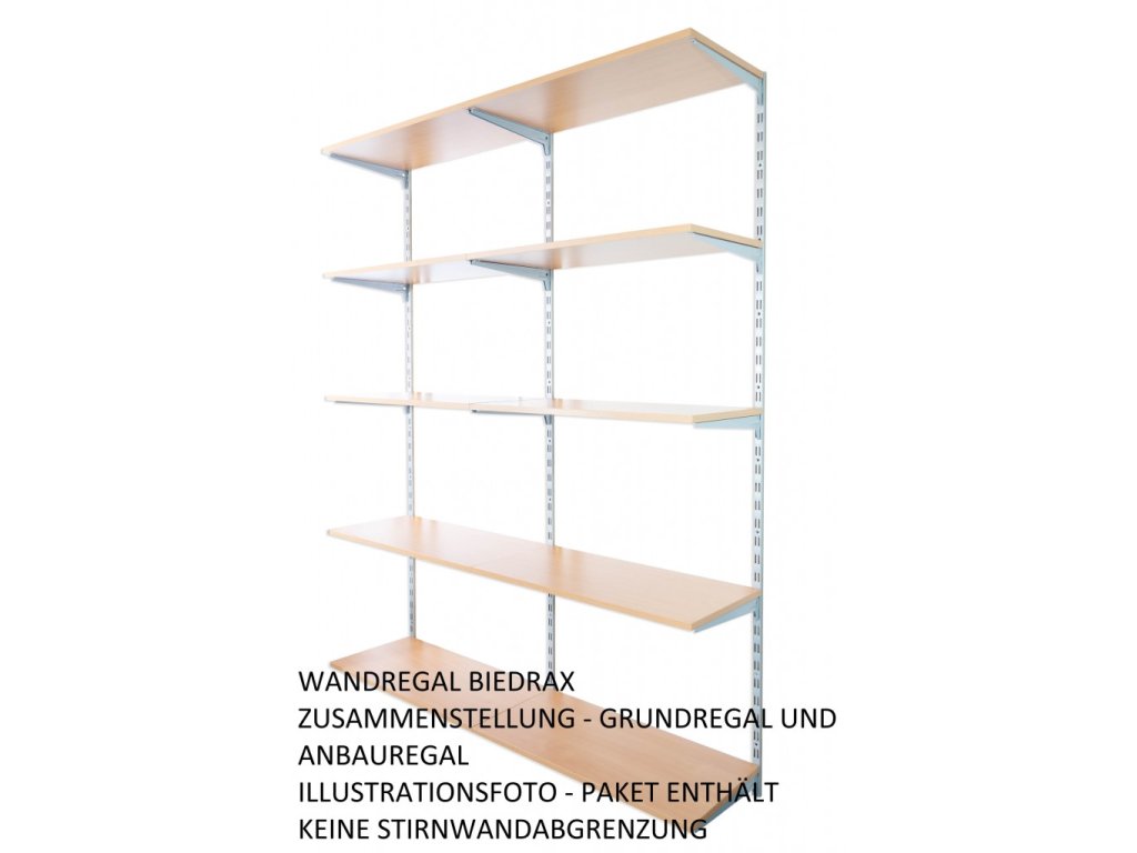 Das Anbauwandregal enthält in der Packung nur eine Lochschiene auf der Wand mit löchern in zwei Reihen. Wenn Sie eine Zusammenstellung von Regalen brauchen, wählen Sie einen Grundwandregal und dazu dann das Anbauregal oder Regalen.