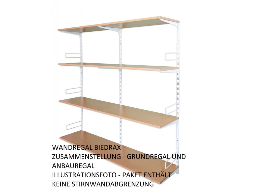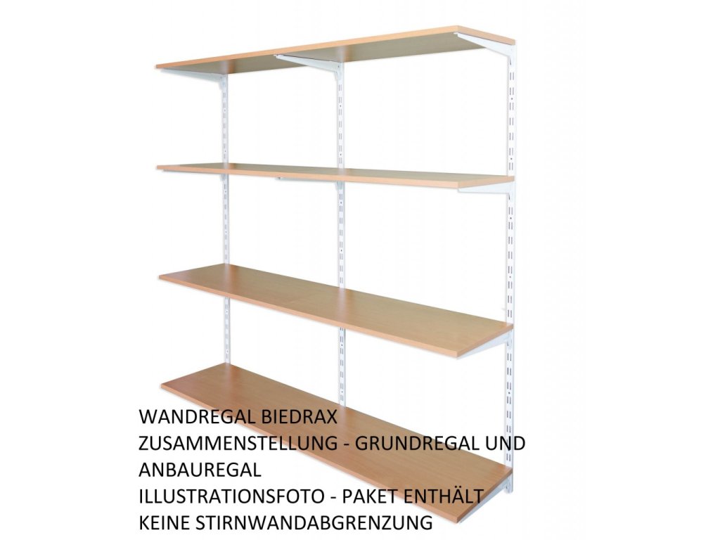 Das Anbauwandregal enthält in der Packung nur eine Lochschiene auf der Wand mit löchern in zwei Reihen. Wenn Sie eine Zusammenstellung von Regalen brauchen, wählen Sie einen Grundwandregal und dazu dann das Anbauregal oder Regalen.