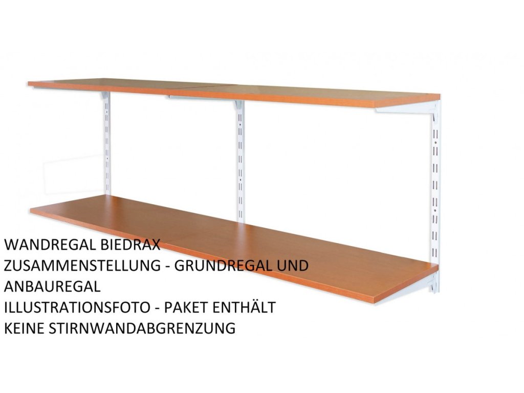 Das Anbauwandregal enthält in der Packung nur eine Lochschiene auf der Wand mit löchern in zwei Reihen. Wenn Sie eine Zusammenstellung von Regalen brauchen, wählen Sie einen Grundwandregal und dazu dann das Anbauregal oder Regalen.